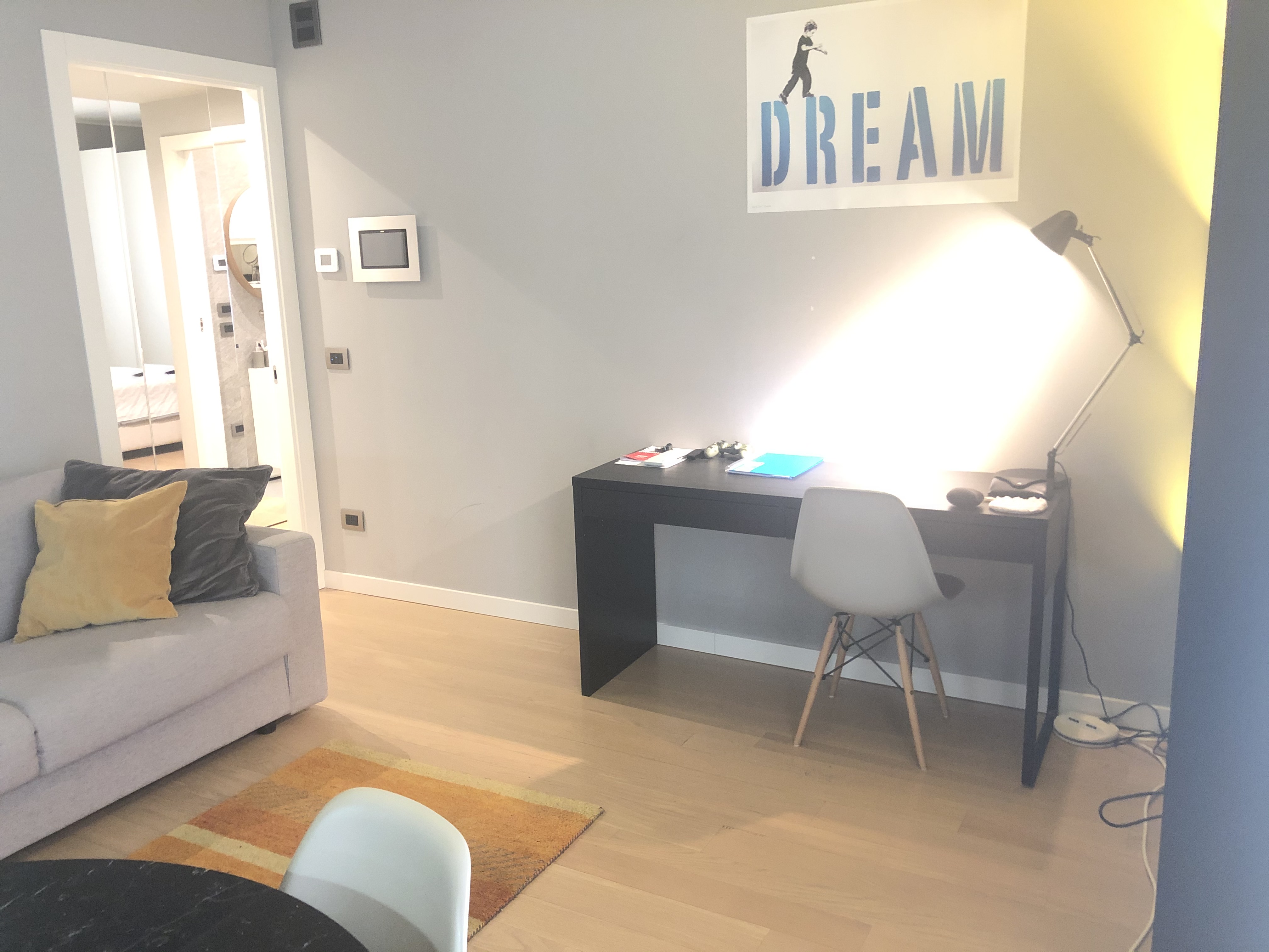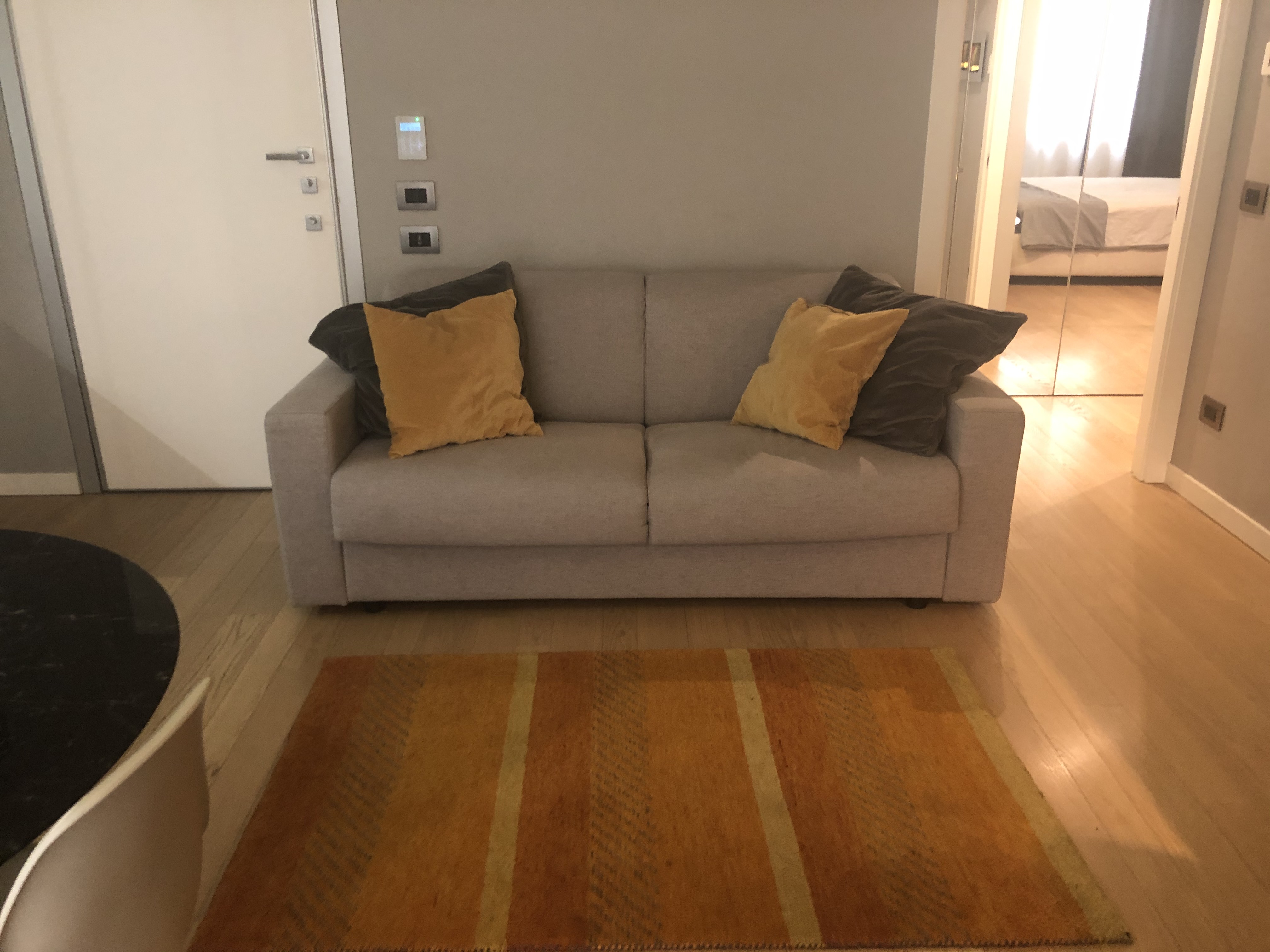 In via Sandri, tra l’elegante via Turati e la caratteristica via San Marco, nel cuore di Brera. In contesto di assoluto prestigio con elegante lobby e servizio di portineria attivo tutto il giorno, nuovo bilocale con arredi Molteni e Dada composto da ampio living con divano letto, TV e cucina a vista e balcone, sistema domotico, allarme e raffrescamento. Silenziosa camera da letto con finestra con affaccio interno e grande armadio, bagno, ripostiglio con lavasciuga e cantina.