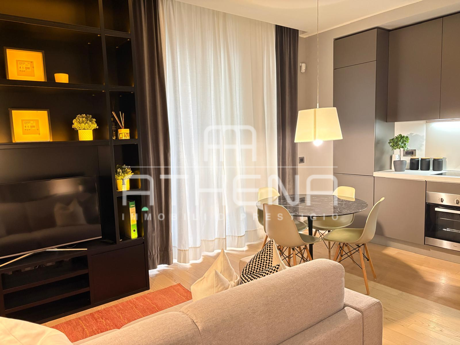 In via Sandri, tra l’elegante via Turati e la caratteristica via San Marco, nel cuore di Brera. In contesto di assoluto prestigio con elegante lobby e servizio di portineria attivo tutto il giorno, nuovo bilocale con arredi Molteni e Dada composto da ampio living con divano letto, TV e cucina a vista e balcone, sistema domotico, allarme e raffrescamento. Silenziosa camera da letto con finestra con affaccio interno e grande armadio, bagno, ripostiglio con lavasciuga e cantina.